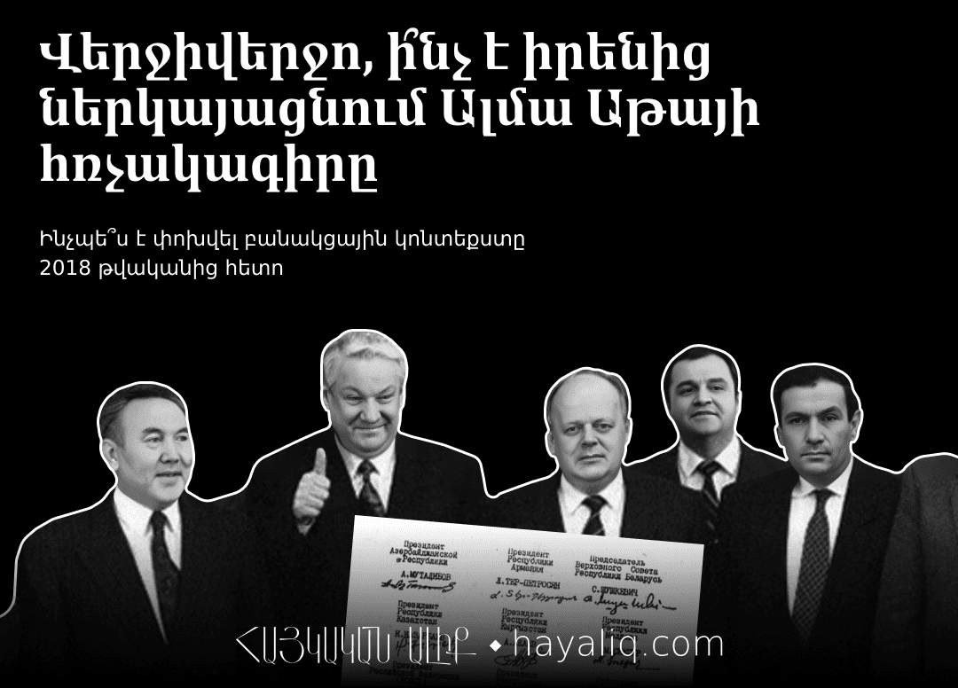 Ալմա-Աթայի հռչակագիրը երկարամյա բանակցային գործընթացի ընթացքում երբեք ընկած չի եղել Հայաստանի և Ադրբեջանի միջև հարաբերությունների կարգավորման հիմքում։ Ընդհակառակը, բանակցությունների արդյունքում Ադրբեջանը հայտարարել է, որ իրեն ստիպում են ճանաչել Արցախը։ Սակայն ամեն ինչ փոխվեց 2018 թվականից, երբ դե ֆակտո իշխանությունները որոշեցին գործընթացը սկսել «զրոյական կետից» և 2020 թվականի կապիտուլյացիայից հետո, որից հետո Ադրբեջանը շարունակում է ամրապնդել իր դիվանագիտական հաջողությունը։