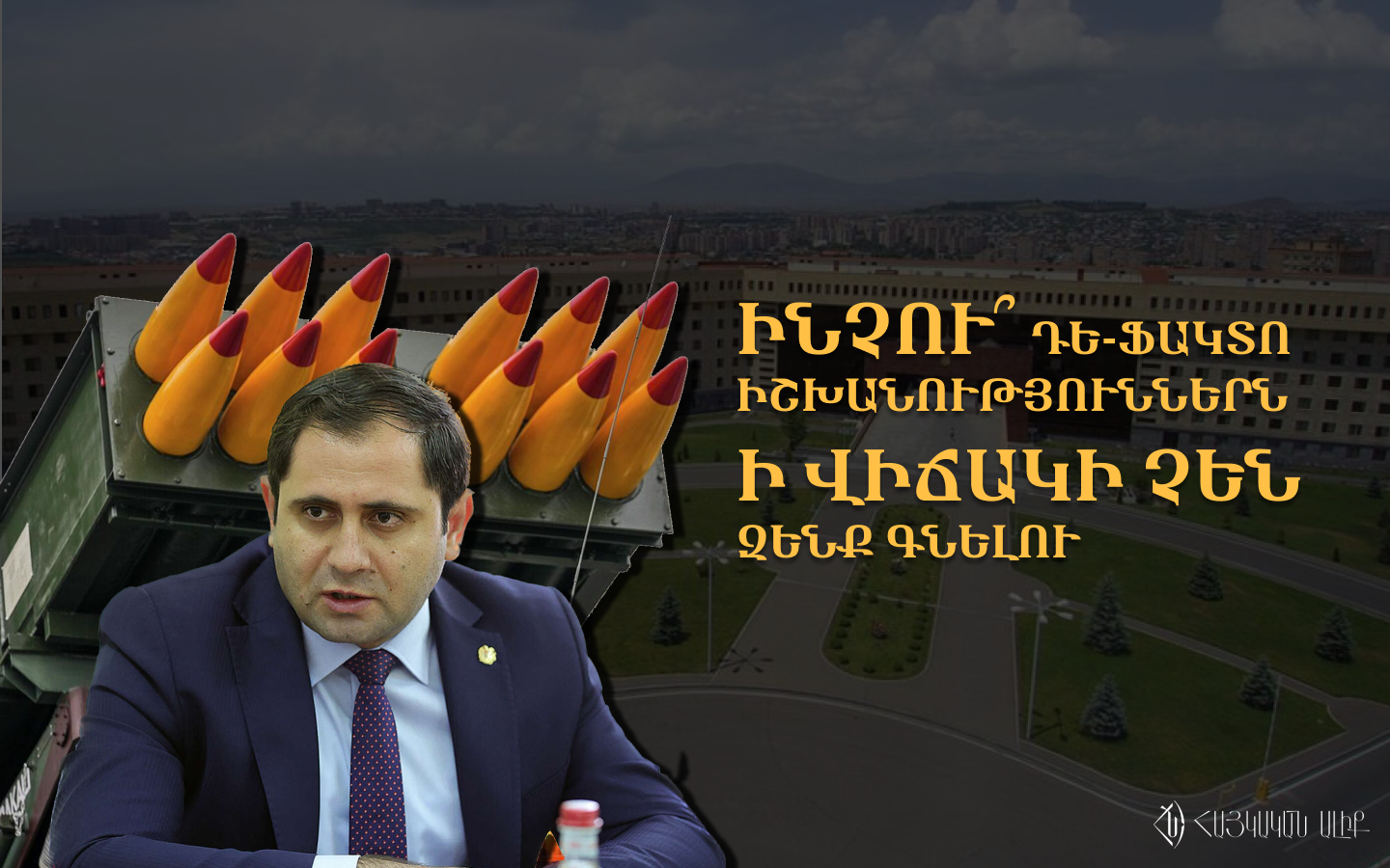 Այսինքն՝ կարելի է հստակ ասել, որ նախկինում Հայաստանը դրսից զենք ձեռք բերելու խնդիր չի ունեցել։ Նոր իշխանությունների օրոք դրանք առաջացան։ Իսկ պատճառը պետք է փնտրել հենց «հեղափոխական իշխանությունների» քաղաքականության մեջ։ Ի՞նչն են նրանք անում ոչ այնպես, որ ի վերջո Հայաստանը մնում է անզեն ու անպաշտպան։