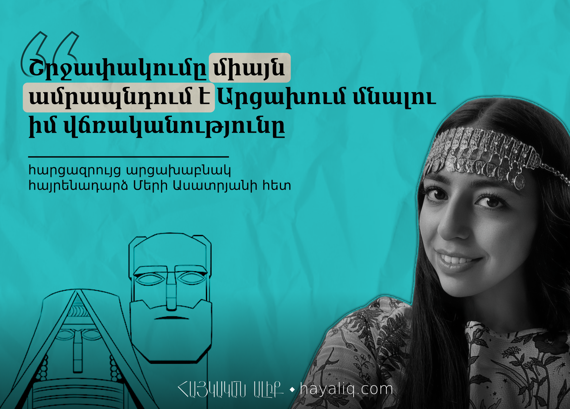 – Հավանաբար լսած կլինես, որ հայ հասարակության մեջ տարածված են բազմաթիվ միֆեր արցախցիների մասին, որոնք շատ միօրինակ են, և բոլորը դրանք կրկնում են, կարծես թե, պատճենելով մեկը մյուսին: Դու` որպես աղջիկ, որն Արցախից չէ, արդեն շատ ամիսներ ես ապրում տեղացիների հետ: Եթե ռոմանտիզմը մի կողմ դնենք, պատմի՛ր, թե ինչ տպավորություններ ունես նրանցից: Կարծրատիպերն արդարացվա՞ծ են: