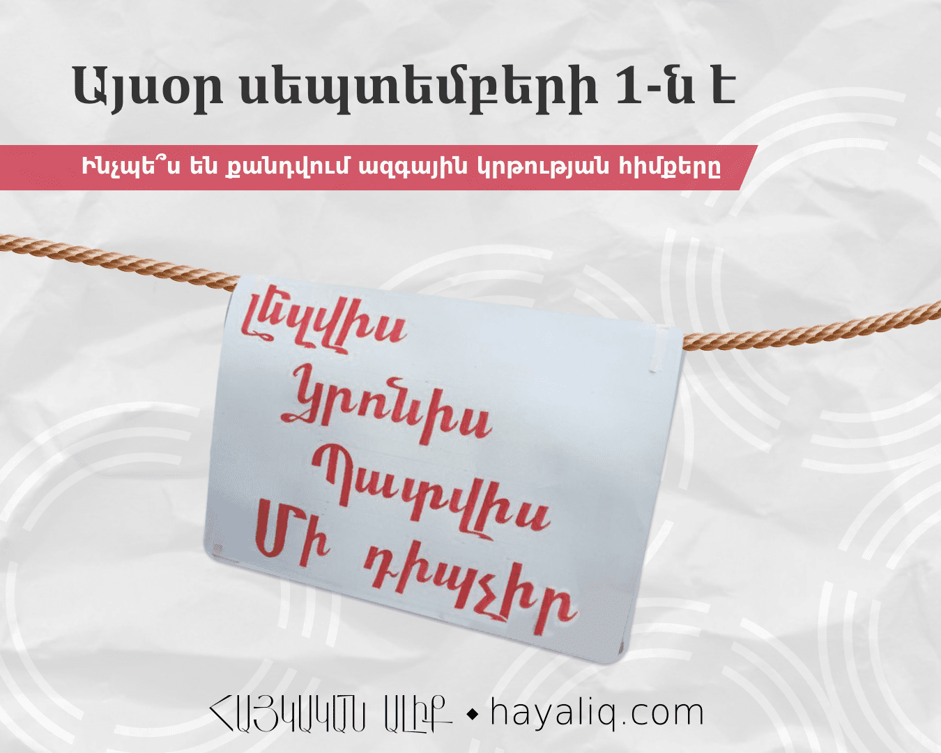 Այսօր սեպտեմբերի 1-ն է: Հայտնի փաստ է, որ ազգային կրթությունը պետության ամուր հիմքերի գրավականներից մեկն է: 2018 թվականի իշխանափոխությունից հետո, ինչպես բոլոր ոլորտներում, կրթության ոլորտում ևս տեղի են ունեցել և ունենում բացասական և ապազգային փոփոխություններ: «Հայկական ալիք»-ը անդրադառնում է դպրոցներում և բուհերում տեղի ունեցած փոփոխություններին: