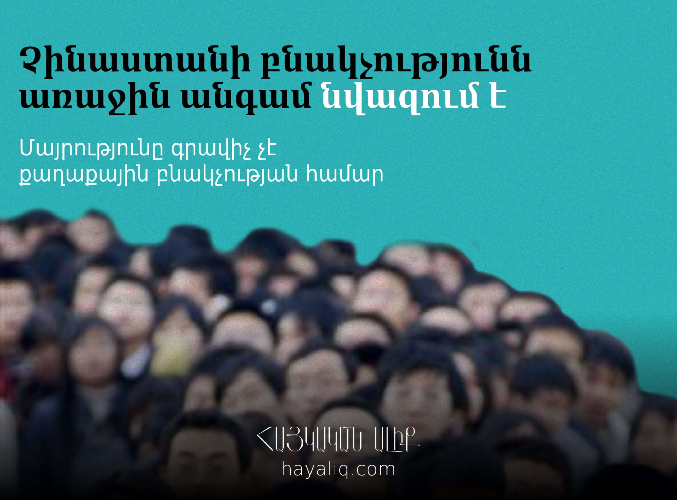 Չինաստանի բնակչությունը վերջին տասնամյակների ընթացքում առաջին անգամ նվազում է: Աշխարհի ամենաբազմամարդ երկրում ծնելիության ռեկորդային ցածր մակարդակը մարտահրավեր է նետում սպառման վրա հիմնված աճի մոդելին, և հարցեր է առաջացնում այն մասին, թե արդյոք Չինաստանը կարող է առաջ անցնել ԱՄՆ-ից՝ որպես աշխարհի ամենամեծ տնտեսություն: