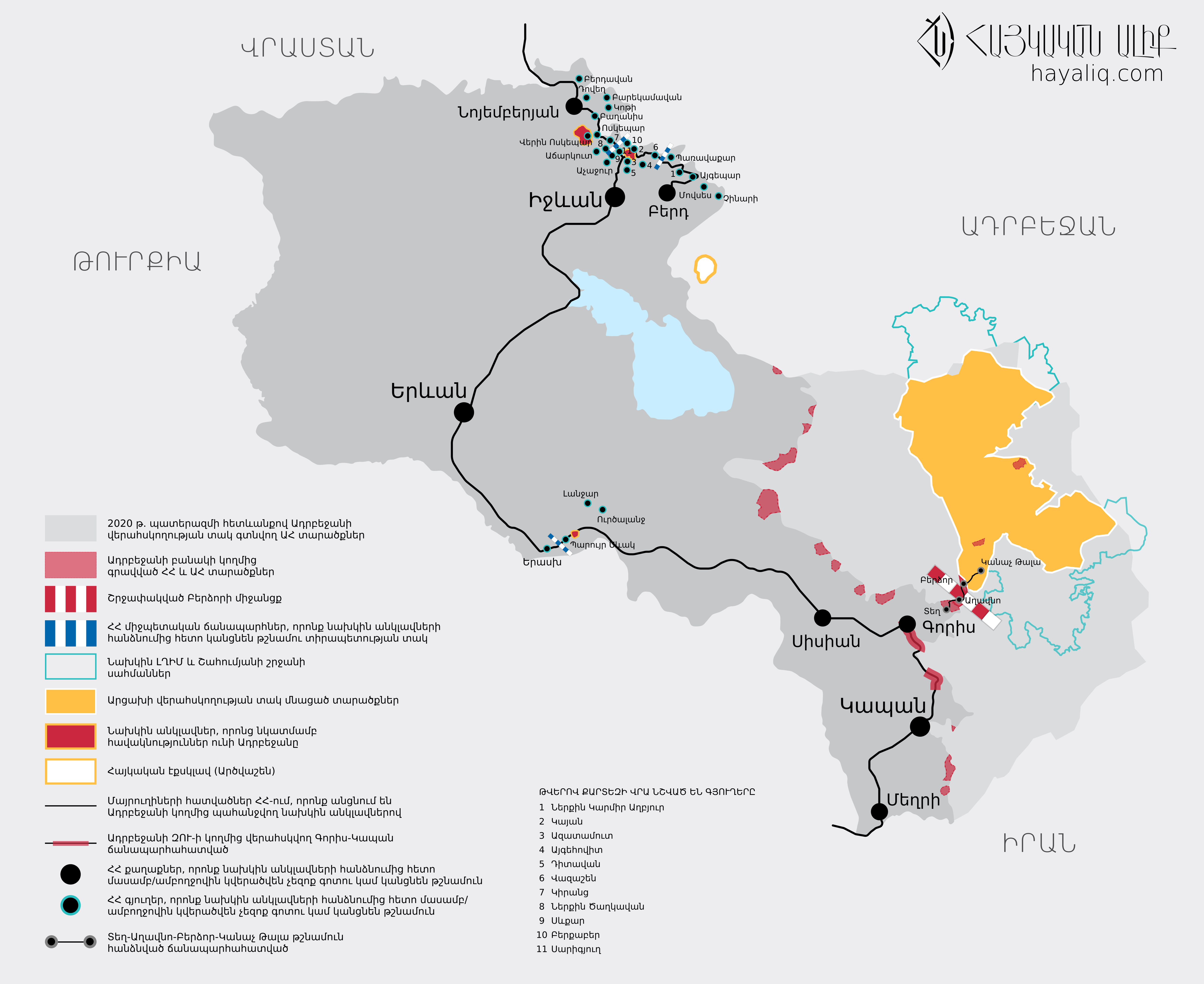 - Ադրբեջանին կտրվեն Հայաստան-Իրան և Հայաստան-Վրաստան միջպետական ճանապարհների մի քանի հատվածներ, հանրապետական և մարզային նշանակության ճանապարհներ Սյունիքում, Վայոց Ձորում, Գեղարքունիքում և Տավուշում։
