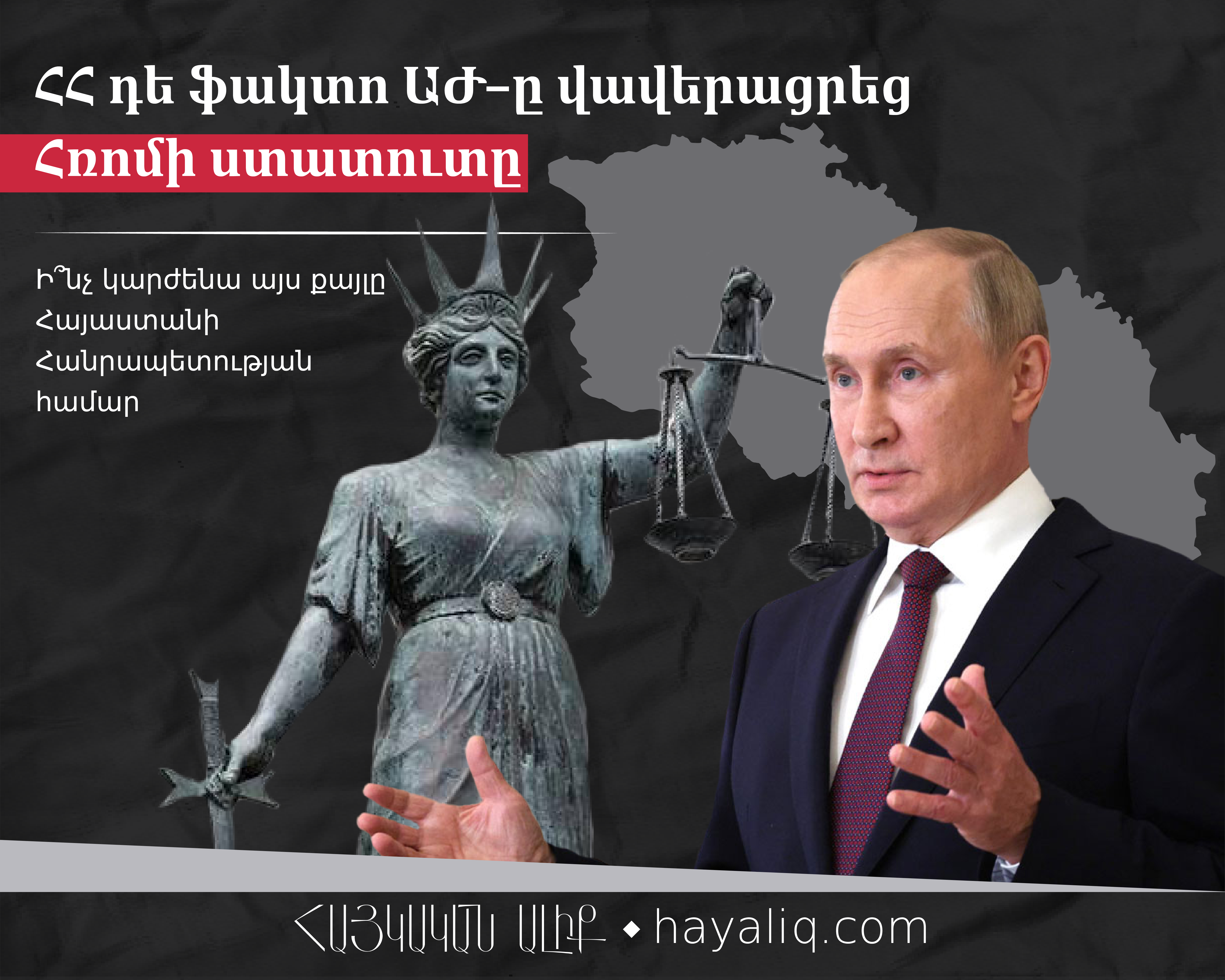 Չնայած բազմաթիվ հանգամանքներին և զգուշացումներին, այդ թվում՝ ՌԴ նախագահի մամուլի խոսնակ Պեսկովի կողմից, ով նշել էր, որ այս որոշումը կդիտարկվի որպես «ծայրահեղ թնամական» ՌԴ-ի նկատմամբ՝ այսօր ՀՀ դե ֆակտո ԱԺ–ը 60 կողմ, 22 դեմ, 0 ձեռնպահ ձայներով վավերացրեց Հռոմի ստատուտը: Հասկանալու համար, թե ինչ հետևանքներ կունենա և ինչ կարժենա այս քայլը Հայաստանի Հանրապետության համար, «Հայկական ալիք»-ը զրուցել է «Պառլամենտարիզմի զարգացման միջազգային կենտրոնի» գործադիր տնօրեն, սահմանադրագետ Գոհար Մելոյանի հետ, ով հանգամանալից ներկայացնում է հարցի իրավական և քաղաքական կողմերը.