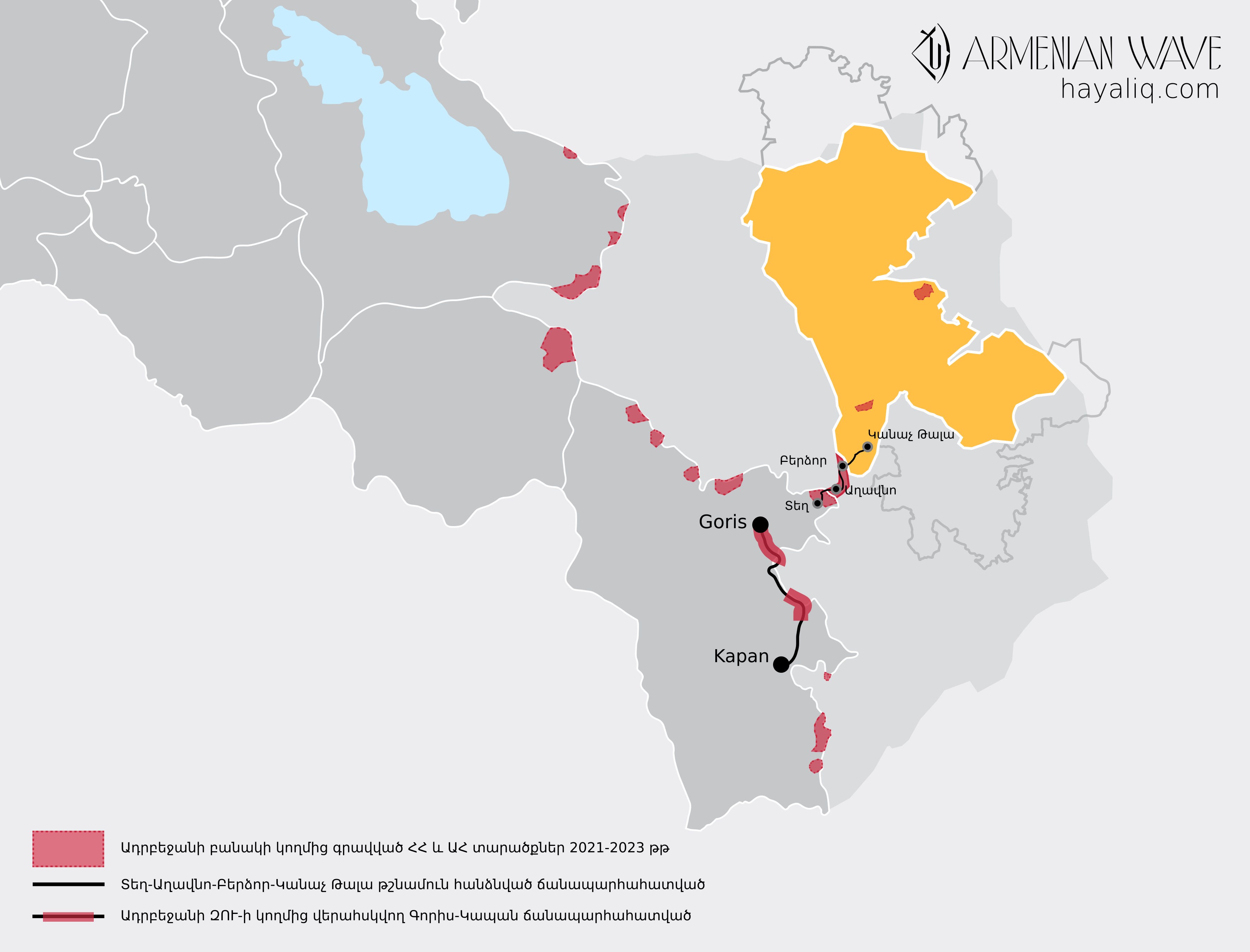 Դեռևս հունվար ամսին «Հայկական ալիք»-ն իր հետևորդների համար պատրաստել և ներկայացրել էր քարտեզ, որտեղ ակնառու կերպով երևում է ադրբեջանական շրջափակման քաղաքականության հետագիծը: Քարտեզն ուշադիր ուսումնասիրելու պարագայում ակնհայտ է դառնում, որ ադրբեջանական զորքերի ներխուժումը ՀՀ սուվերեն տարածք բնավ պատահական վայրերում չէ տեղի ունեցել, այլ հատուկ ընտրված ռազմավարական կարևորության տեղանքներում: