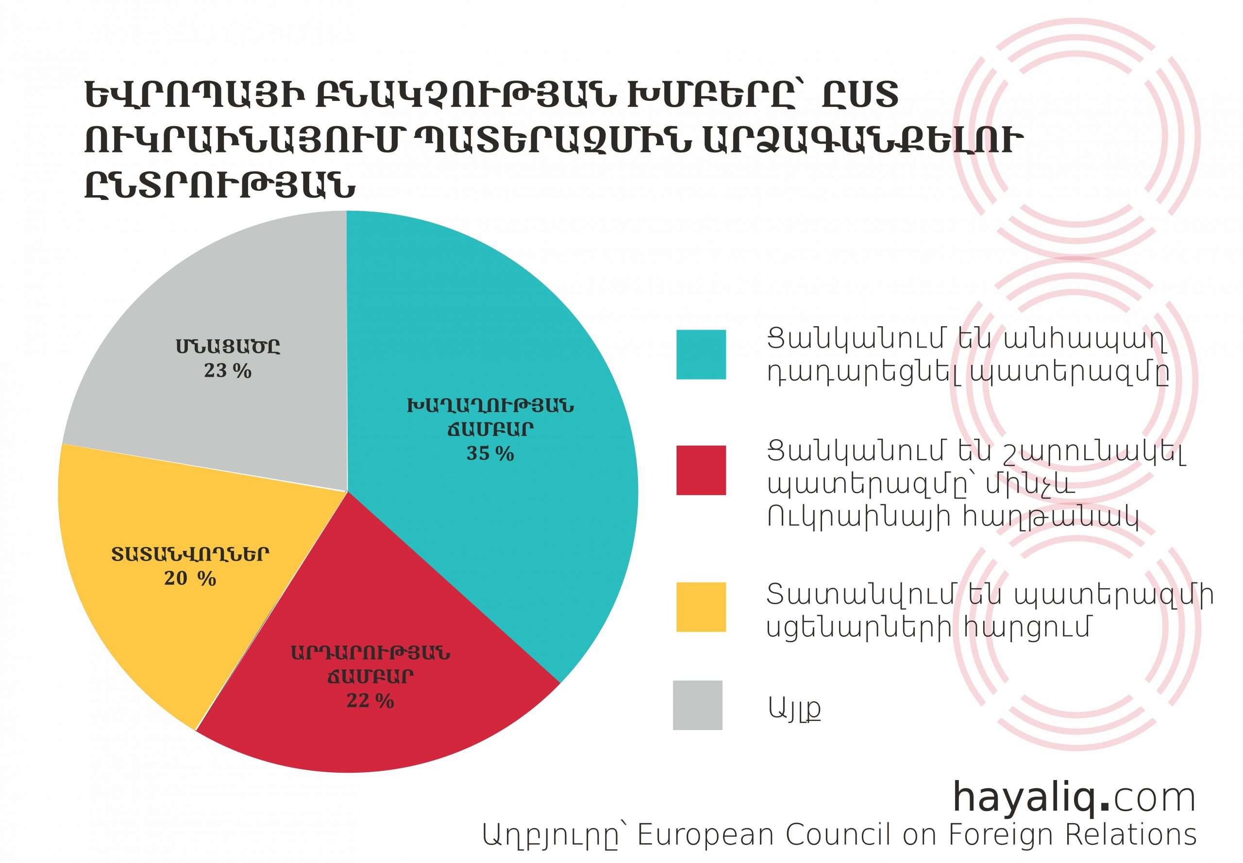 2022 թ. փետրվարին Ուկրաինայում պատերազմի մեկնարկից անմիջապես հետո Եվրոպայում հասարակական տրամադրություններում տիրող միասնությունն ու վճռականությունը՝ ընդունելու ուկրաինացի փախստականներին, կոշտ տնտեսական և քաղաքական պատժամիջոցներ կիրառելու ՌԴ-ի նկատմամբ, աննախադեպ էին: Սակայն, կարծես թե, այս միասնությունը ու վճռականությունը, քայքայվում է: Այդ մասին են խոսում անցկացված հանրային կարծիքի ուսումնասիրությունները։